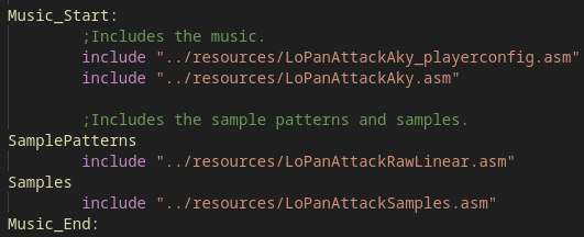 Please check out the demo song available in the songs/ArkosTracker3/samples music folder called “Lo Pan’s Attack” to have a better grip on how samples are used. For this player, and contrary to the digidrum player, samples are written directly in the music sheet, which is more natural and convenient than using the Event track.